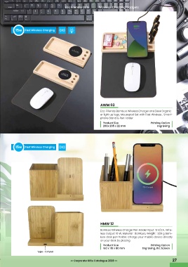 Bamboo Wireless Charger Pen Holder Input : 9 V/2 A , Wire-