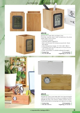 Wooden Pen Stand Card Holder With Clock Natural Material